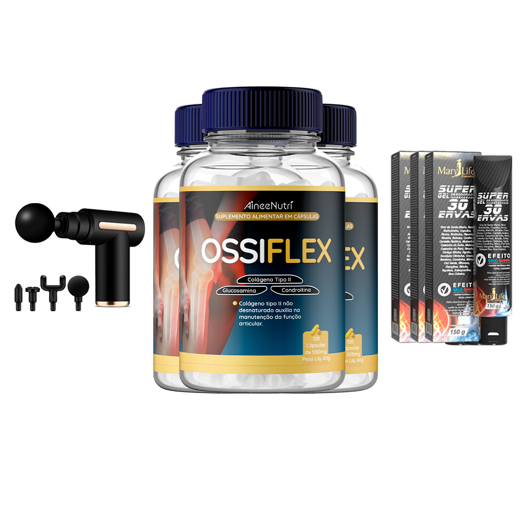 O OssiFlex foi desenvolvido para aliviar as dores articulares, reduzir a inflamação e regenerar a cartilagem, promovendo mais mobilidade e qualidade de vida.
